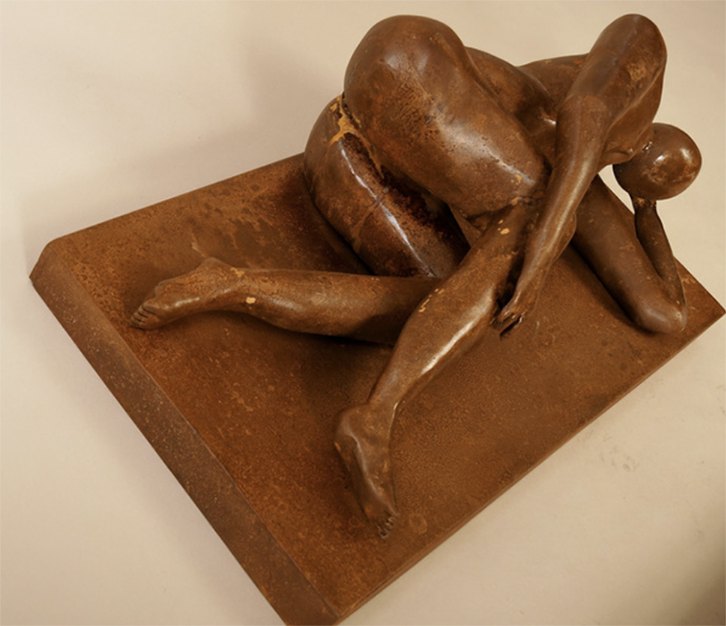 L’escultura aborda el conflicte interior des de la forma, el gest i la matèria, allunyant-se de la literalitat narrativa per centrar-se en allò humà.